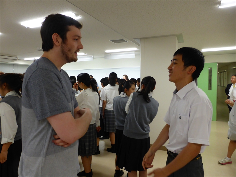 本時では、インドネシア、韓国、台湾、バングラディシュ、フィリピンなどの出身の留学生から、各国の紹介を英語で受けました。その後、本校生徒が9つのグループに分かれ、各グループに留学生一人がつく形で、留学生によるプレゼンテーションがなされました。本校生徒は、留学生の説明に耳を傾け、時には談笑しながら、聞き入っていました。次回は、本校生徒が、Keynoteを使って、「日本のリアルな高校生活」と題して、留学生向けに英語でプレゼンテーションを行います。