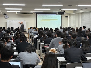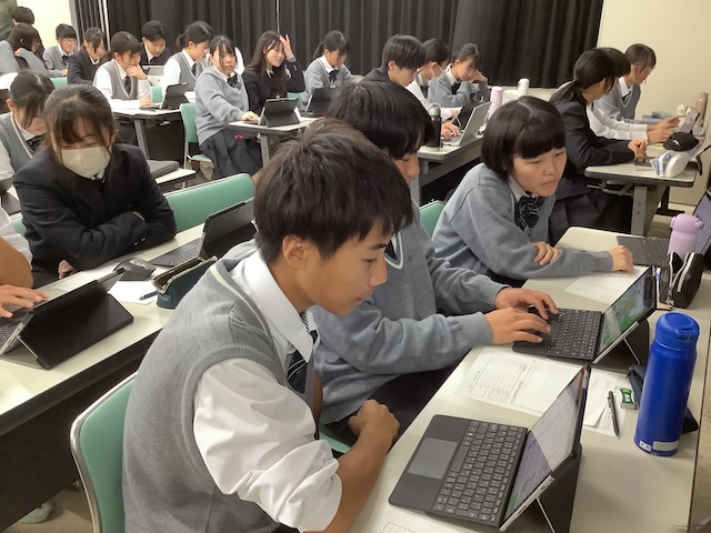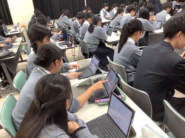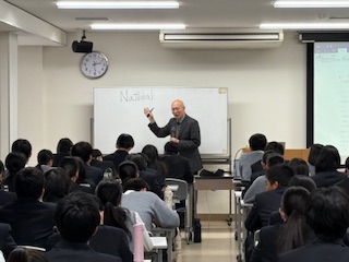 愛媛大学法文学部・山本與志隆先生による「ナショナリズムとグローバリズム」をテーマとした講義を受講しました。講義は「ナショナリズムとはなにか」、「グローバリズムの中の民族と国家」、「文化の根源としての言語」の3節から構成され、哲学的な視点からお話しいただきました。生徒たちからは「誤った情報や思考に流されず、“人種に区別はない” という考えを大切にしたい」「人間の種はひとつであり、人種というものは存在しない。人種という概念は人の思い込みである」といった意見が寄せられ、2年生がグローバルスタディーズを通して学ぶべき内容が凝縮された講義となりました。山本先生、本日はお忙しい中、貴重なお話をいただき、誠にありがとうございました。