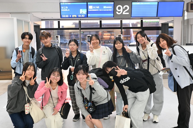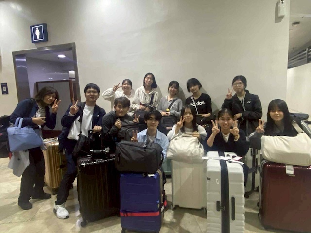 令和7年度のフィリピン研修が始まりました。参加生徒全員が元気に松山を出発し、東京に向かいました。その後、成田空港で筑波大学附属坂戸高等学校の生徒と合流し、生徒10名、教員2名でフィリピン共和国マニラに向かいました。車内から見えるマニラ市内の様子やホテルの雰囲気、日本とは異なる暑さなど、現地の空気を肌で感じることができました。