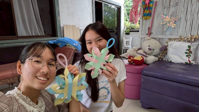 生徒たちは各ホームステイ先で研修を行いました。文化交流の時間には、日本の紹介として「福笑い」体験を行い、フィリピン側からは伝統的な遊び「パロル」づくりを教えていただきました。また、料理づくりやジープニー乗車、ショッピングなどを通して、フィリピンの文化や生活を体験することができました。