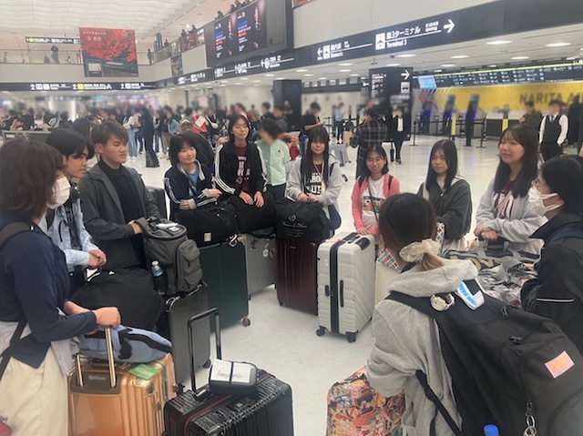 最終日は移動日となり、成田空港に到着後、解団式を行いました。これまでの研修を振り返りながら、一人ひとりが学んだことを発表しました。その後、一緒に研修を行った筑波大学附属坂戸高等学校の生徒とお別れをしました。松山空港到着時には、教員や保護者の皆さまに温かく迎えていただき、本研修を無事に終えることができました。12月には、ホームステイでお世話になったフィリピン大学附属高校の生徒が本校を訪問する予定です。日本の文化や本校の魅力を最大限に伝えながら、心を込めてお迎えしたいと思います。