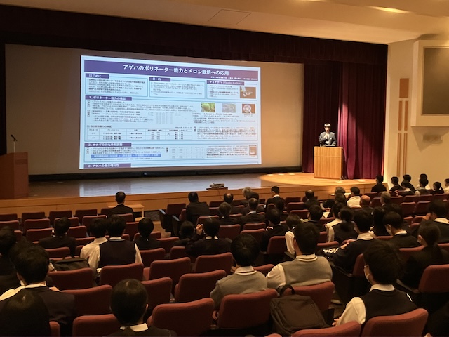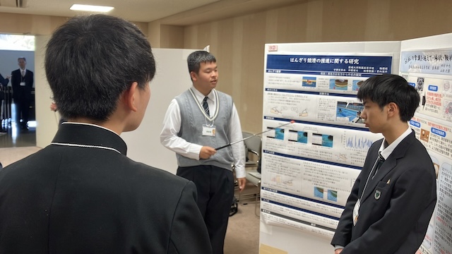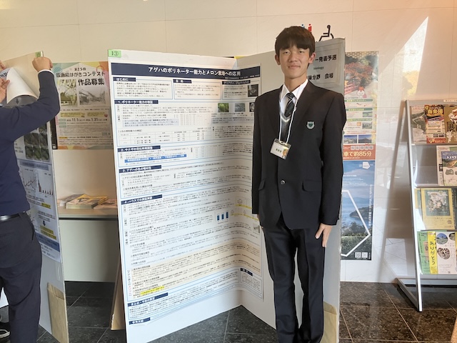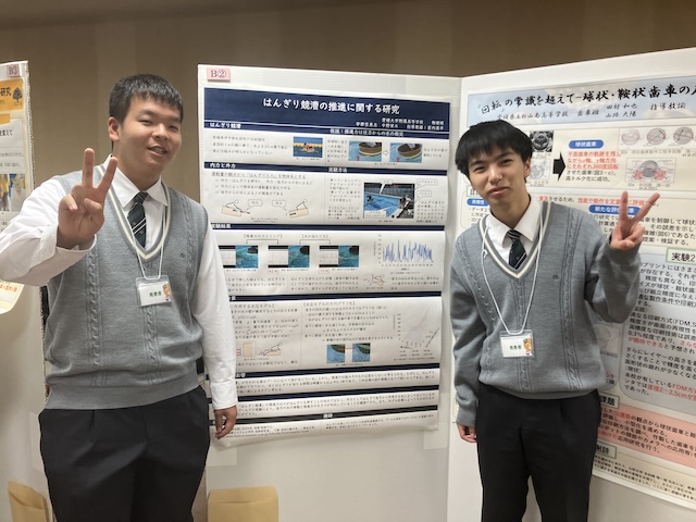 第39回愛媛県高等学校総合文化祭自然科学部門の予選を勝ち抜いた各校代表33作品の発表会が、愛媛県総合科学博物館にて開催されました。本校からは物理分野と生物分野が出場し、このうち生物分野で発表した2年・荻山さんによる「アゲハのポリネーター能力とメロン栽培への応用」が、午前のポスター発表審査を通過し、午後の決勝に進出しました。続く午後の口頭発表審査の結果、荻山さんは見事、生物分野の愛媛県代表に選出され、来年度の全国大会への出場が決定いたしました。今後も研究内容の一層の充実を図り、秋田県で開催される総文祭での健闘を期待しています。