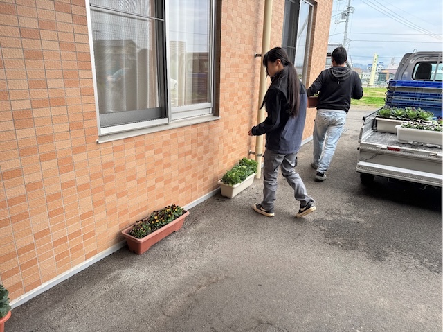 農業科学探究・草花班で委託制作したプランターを福祉施設へお届けしました。冬を代表するハボタン5品種と、パンジー・ビオラを組み合わせて制作した10基のプランターを、地域の福祉施設にお届けしました。お渡しした際には、施設の方々から大変喜んでいただきました。これらの花は4月頃まで楽しむことができ、日々の施設利用者の皆さまの心をやさしく癒やしてくれることと思います。