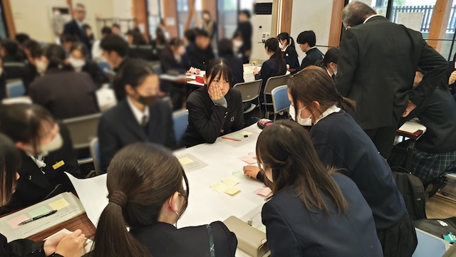 といったトピックについて、他校の生徒とディスカッションを行いました。難しいテーマではありましたが、本校生徒を含め、参加者は活発に意見を交わしていました。今回の研究会を通して、外国人との共生について理解を深める貴重な機会となりました。