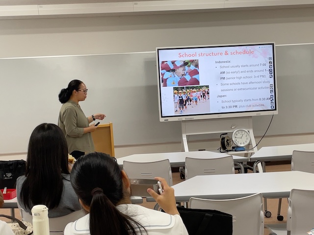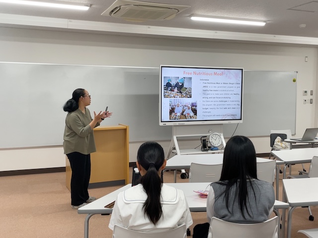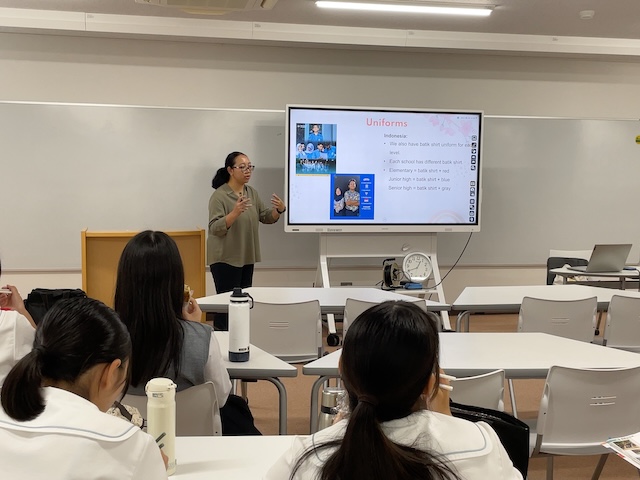 今回は、愛媛大学に留学しているインドネシア出身のジェーンさんによる、「インドネシアの学校生活」をテーマとした英語プレゼンテーションが行われました。