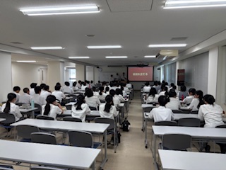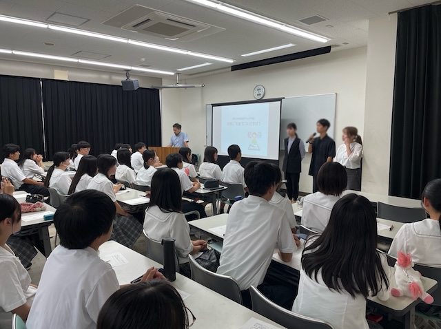 その後、中学部2年生と「進路交流会」を実施して交流を深めました。日本の高校に進学する生徒さんも多いとのことで、まず、高校生から日本の高校生活の様子や自身の進路選択時の経験や思いを語っていました。その後、中学部2年生から海外生活の驚きや悩み・良かったことなどの経験談を聞くことができました。