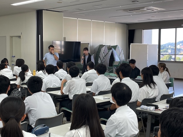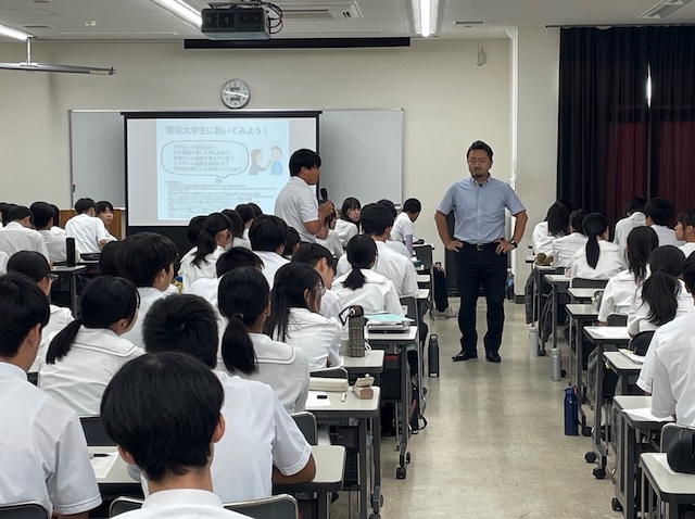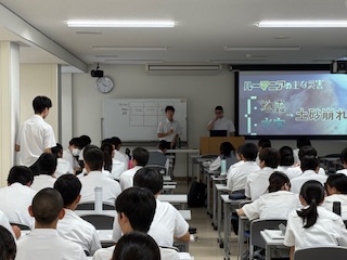 本日の「産業社会と人間」では、キャリア学習として「仕事とお金についての理解を深める」をテーマに学びました。雇用形態には大きく分けて正規雇用と非正規雇用の2種類があり、生涯賃金には大きな格差があることを知ることができました。自らの将来を後悔しないためには、高校生のうちから将来について具体的に考えることが大切であると理解しました。授業の後半では、現役大学生の方からこれまでの人生を振り返ったお話を伺い、疑問に思ったことを質問するなどして、さらに理解を深めることができました。村田先生におかれましては、ご多用のところご講演いただき、誠にありがとうございました。