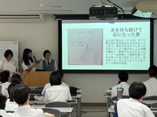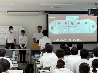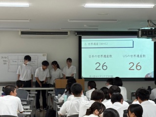 グローバルスタディーズⅠで取り組んでいる「異文化理解」では、それぞれの国の文化や歴史など、興味・関心のある分野を選び、調べ学習を行っています。今回は、アメリカ班、ルーマニア班、モザンビーク・ベトナム班から選出された6班によって、学年発表会を実施しました。フィリピン班は、間近に迫った渡航準備などのため、今回は参加できませんでした。発表では、各国の多岐にわたるテーマについて調査・考察が行われ、質疑応答も活発に行われました。時間が足りなくなるほどの充実した発表会となりました。この「異文化理解」の学びの成果は、12月に実施される愛附コンテストにて発表いたします。