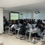 「産業社会と人間」の授業で、愛媛大学の石原裕香先生とRajesh Nair先生をお招きし、アントレプレナーシップ教育を行いました。まずアイデア創出の重要性を学び、「井戸の中の猫を救う」課題を基にグループでアイデア創出の練習をしました。その後、批判禁止や斬新なアイデア奨励のルールのもとで多様な解決策を考えました。コストや社会的受容、技術的制約といった発想を妨げるフィルターについても学び、自由な発想の大切さを体験しました。