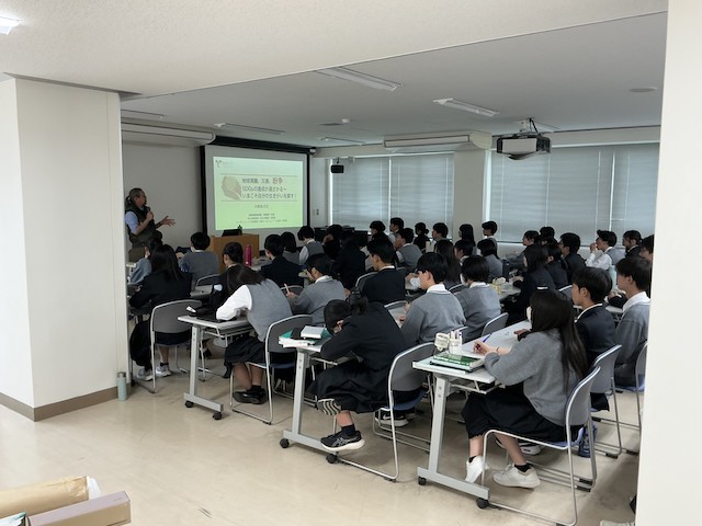SDGs探究Ⅰの授業が実施されました。前半は、5月1日(金)に予定されている炭焼き実習の指導者として鶴見武道講師をお招きし、森林破壊による二次的影響や再生可能エネルギー創出のメリット・デメリットについてご講演いただきました。生徒は、自然環境と共生する生活の意義について多角的な視点から考察する機会となりました。後半は、実習グループごとに必要機材の運搬や当日までの作業スケジュール調整など、役割分担に基づいた共同作業を行いました。当日が楽しみです。